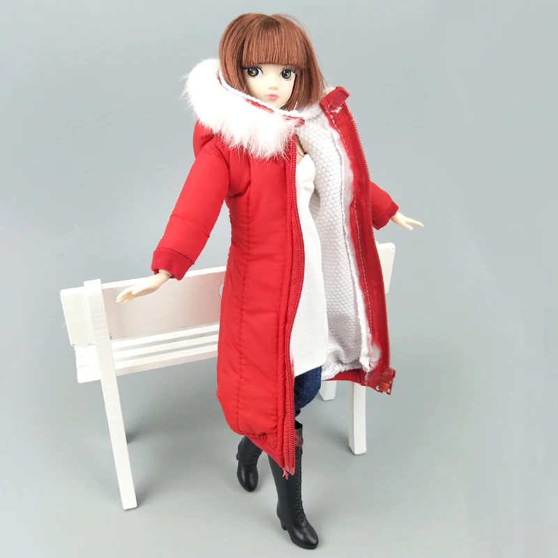 Красная Зимняя одежда, длинное пальто для куклы Барби, одежда, парка для кукольного домика 16 BJD, куртка 1:6, аксессуары для кукол, детская игрушка