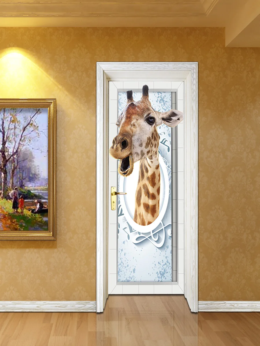 3D креативные дверные наклейки с жирафом, животными, самоклеящиеся ...