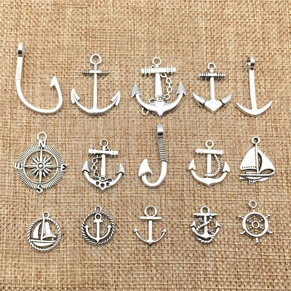 10 шт.лот, винтажные подвески из тибетского серебряного металлического сплава, компасы, анкеры, руль, подвески, ювелирные изделия сделай сам