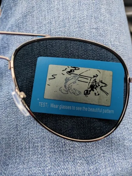 Обычные очки, за демократичную стоимость. Тест на поляризацию какой то не явный, всё темно.