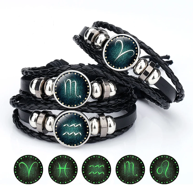 Лидер продаж 2021, светящийся браслет с 12 созвездиями, мужской кожаный браслет, очаровательные браслеты для мужчин, женщин, девочек, ювелирные изделия, оптовая продажа, подарок