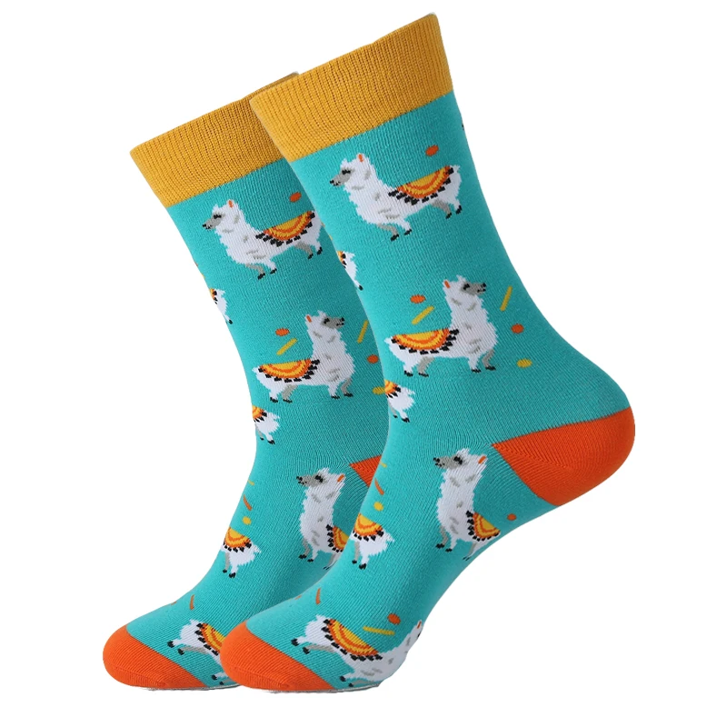Красочные женские и мужские носки в стиле Харадзюку, в стиле хип-хоп, веселые, забавные, с мультяшным принтом, Ленивец, кокосовый Череп, цветок, альпака, подарок на Рождество