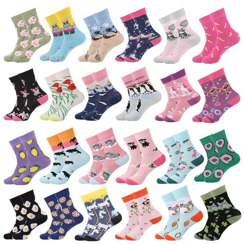 Красочные женские носки в стиле Харадзюку, уличная одежда, Забавные милые носки в Корейском стиле с мультяшными кошками, собаками, единорогами, пингвинами, хиппотом, пончиками для девочек
