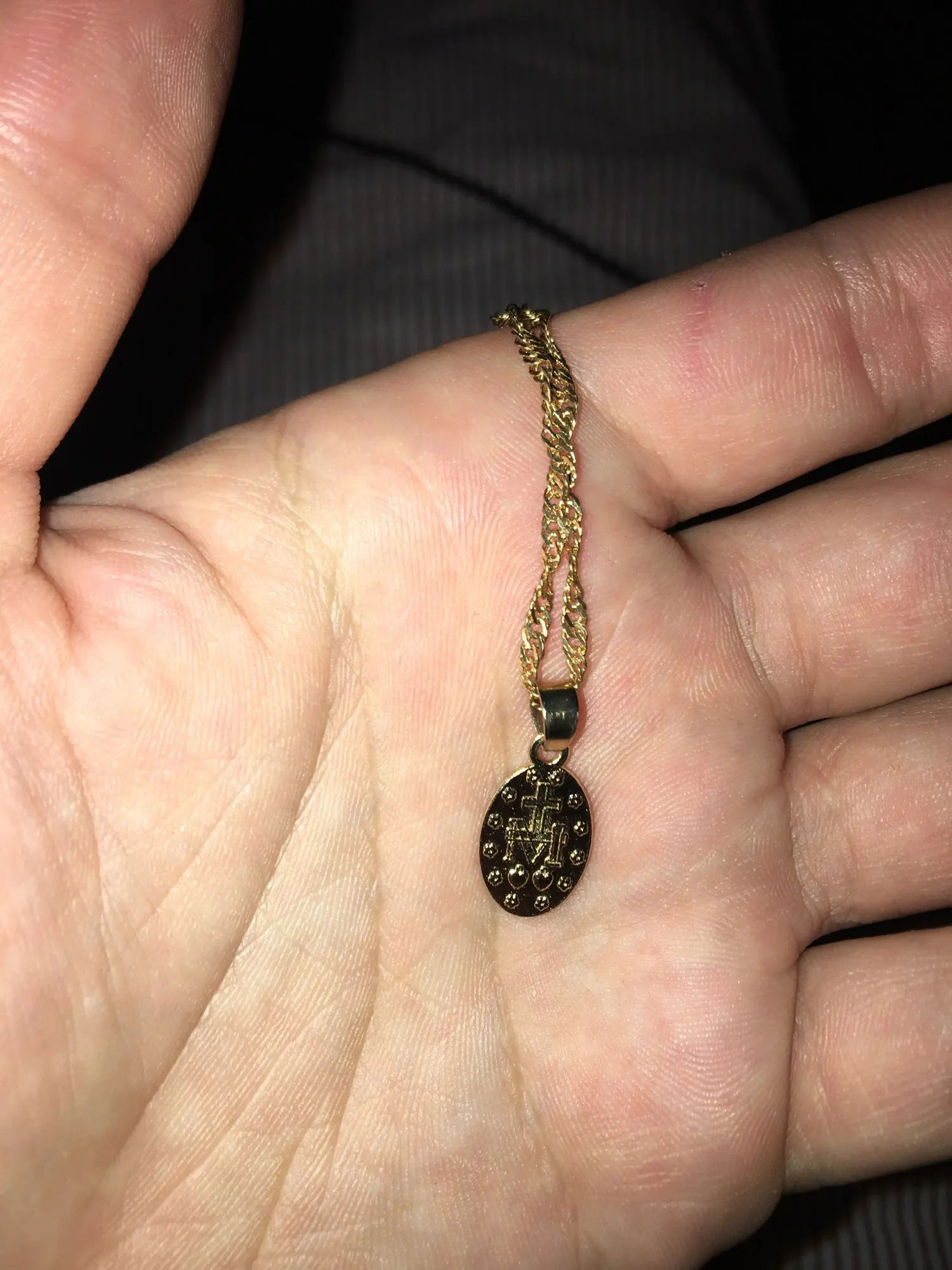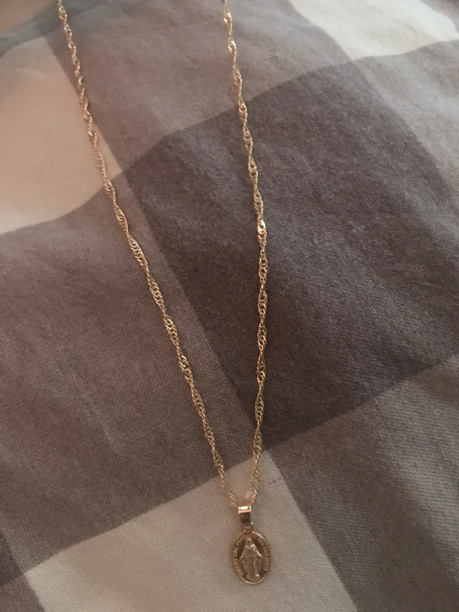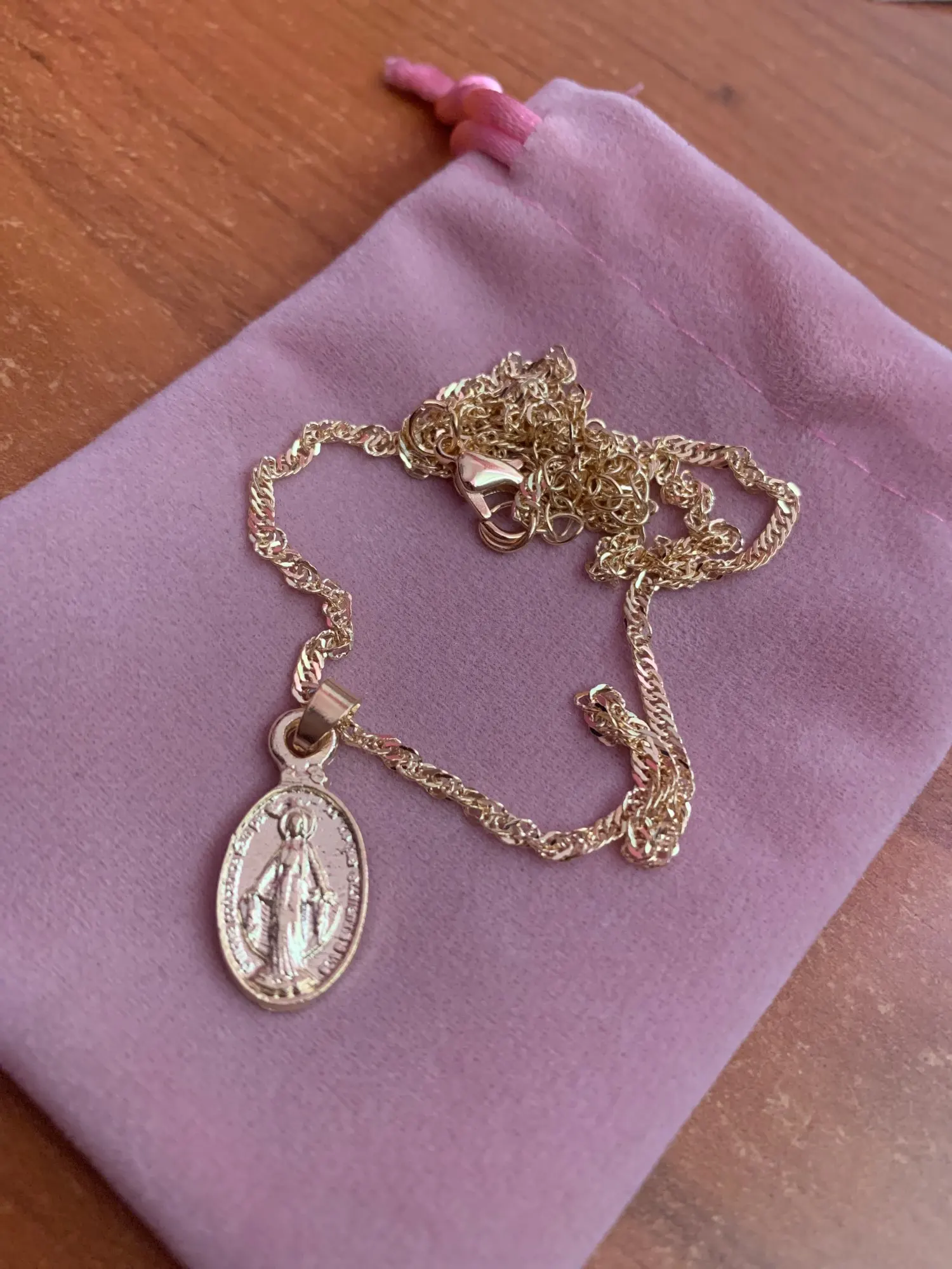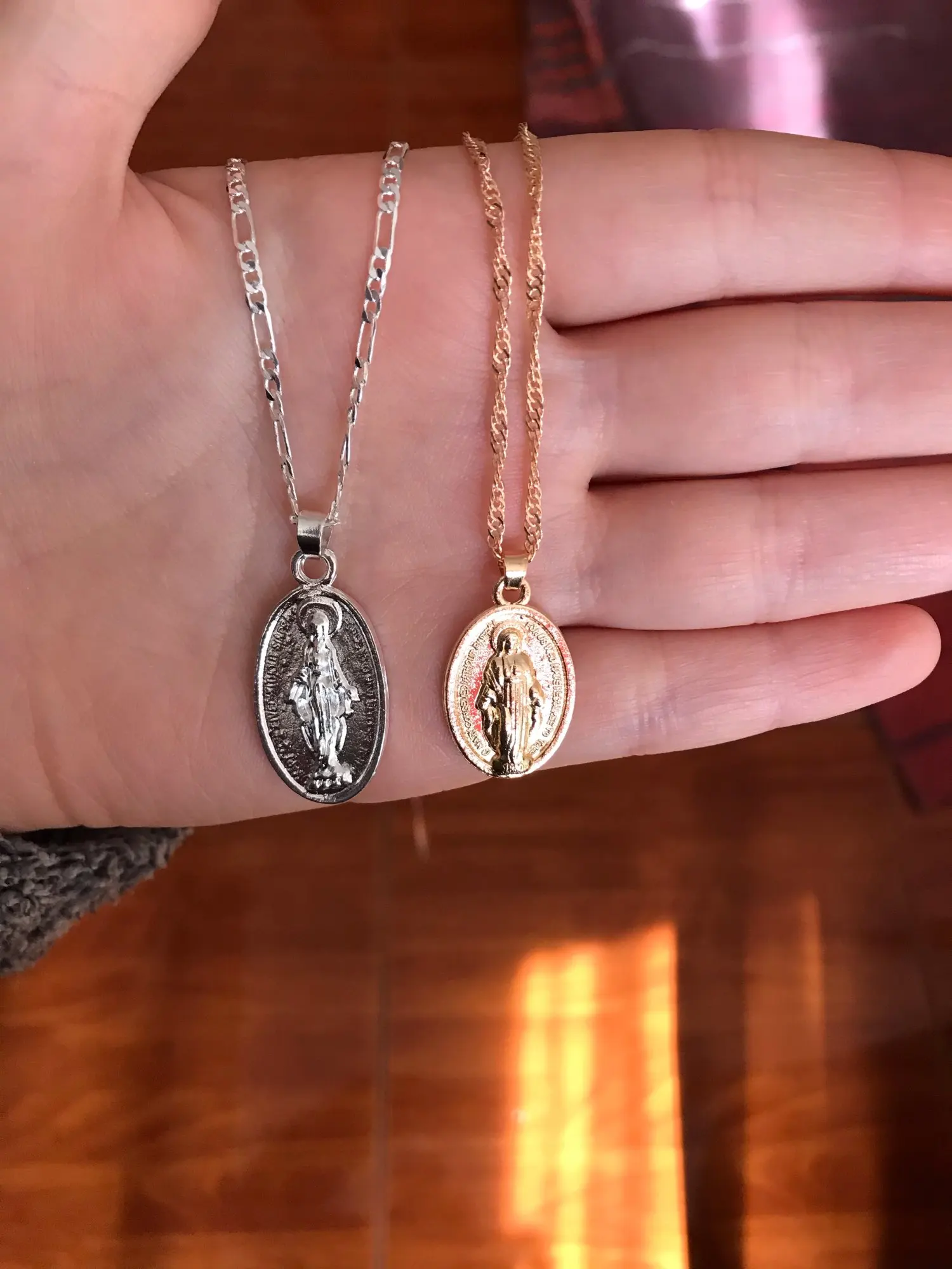 Сначала я попросил золото, и это второй заказ, который я делаю в этом случае в серебре, они не совпадают, медаль серебра намного меньше, а цепь тоже не такая, мне все еще нравится, и по цене качество очень хорошее
