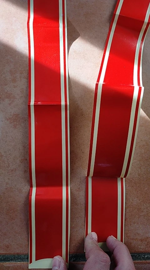 Получил в сложенном виде, что придает наклейке накладные складки, которые, тем не менее, хорошего качества, действительно позор, потому что внезапно в некоторых местах по краям он не хочет прилипать. Наклейка на ленту должна быть свернута вокруг пенопластового цилиндра, чтобы она не повредилась!!