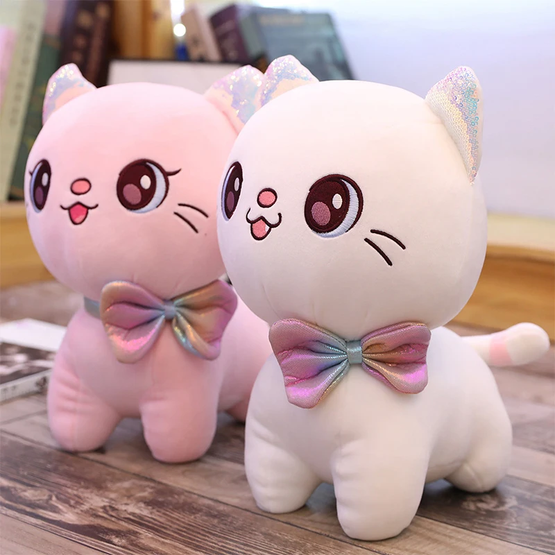 Милая кукла-Кот с большими глазами, 25-45 см, галстук-бабочка, кошка, мягкая плюшевая игрушка-животное, кукла, отличный подарок для детей на день рождения