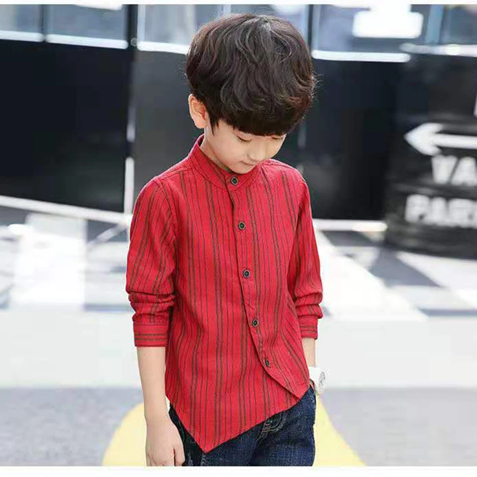 Теплые повседневные весенне-осенние рубашки для мальчиков 2 цветов Модная стильная повседневная рубашка с длинными рукавами и отложным воротником для детей 4, 6, 8, 10, 12, 13