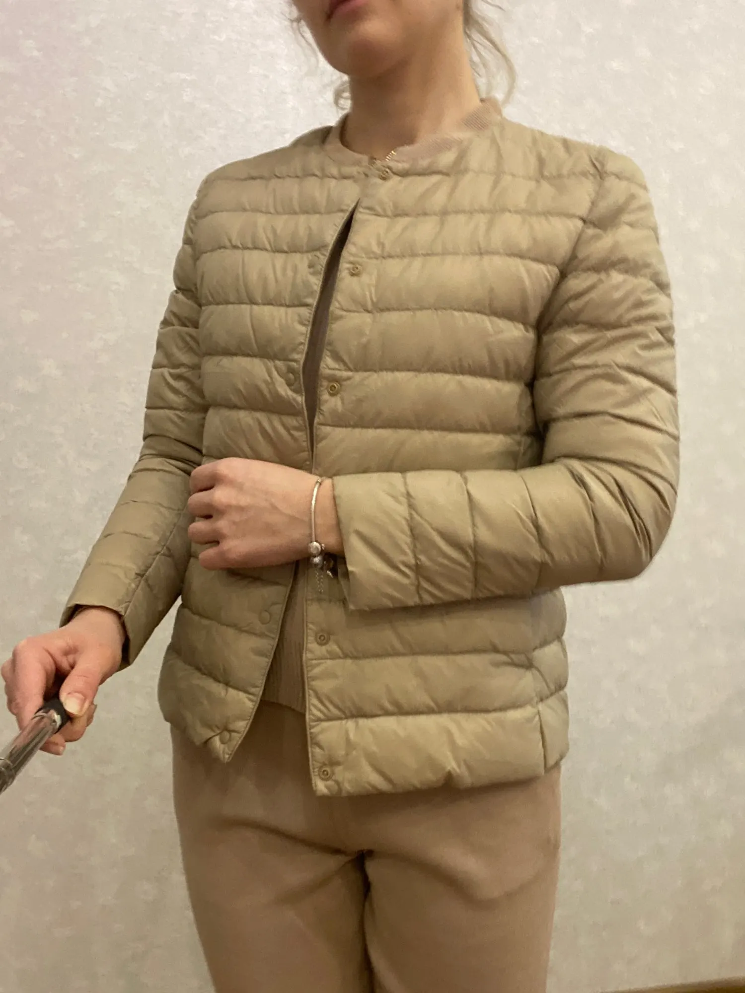 Очень хорошая курточка, как в uniqlo. Даже не ожидала, что окажется такой качественной.Подойдет на весну, или под пальто можно надевать. Цвет как на фото