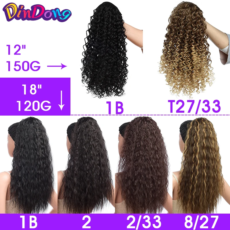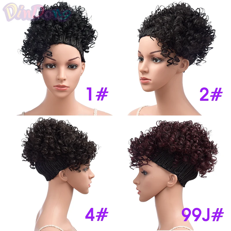 DinDong Короткие афро кудрявыеUpdos парикСинтетический зажим в деформацииКонский хвост, для увеличения волосХвост накладные волосы, "конский хвост", с челкой для Для женщин красные, черные, коричневые