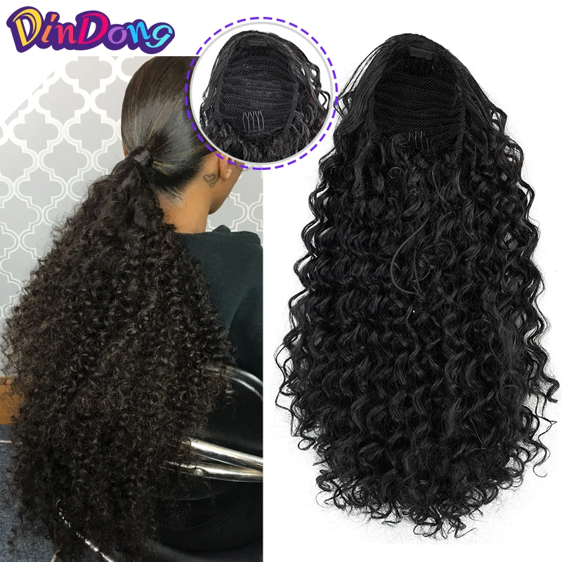 DinDong длинный парик для конского хвоста афро кудрявые накладные в...