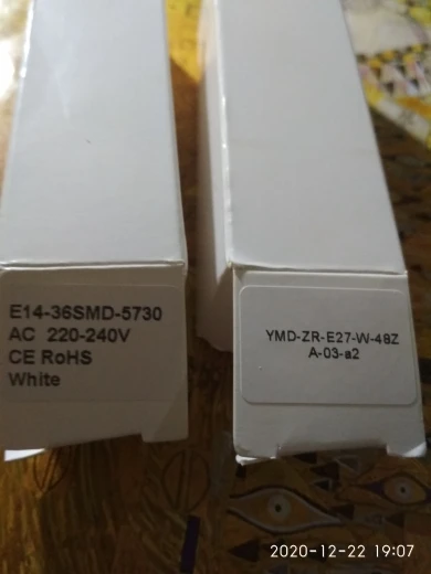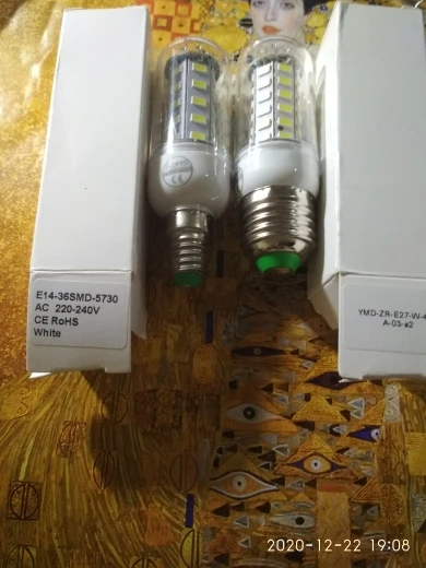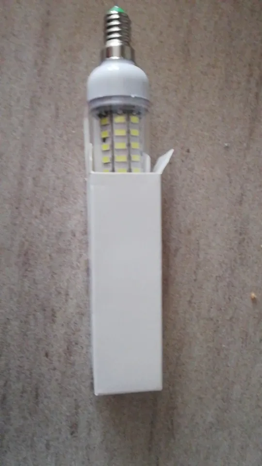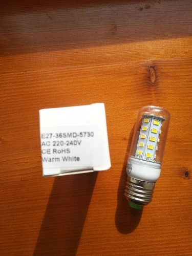 Доставили за 19 дней в МО. К продавцу претензий нет, отправил быстро, все хорошо. Разница между е27 на 72 светодиода и е14 на 36 совсем небольшая, ожилал большего. Белый на 72 светит тусклее энергосберегайки. Некоторые диоды припаяны криво, но работают все.