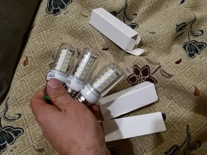 Быстрая доставка, светит +/- как лампа накаливания 40-60w. При сьемке на телефон замечено мерцание по экрану вблизи, другие лампы такой эффект не дают. Фото теста лампочек на кухне, люмены замерял программой на телефоне: :) 1 - простая лампа накаливания 60в (до 1500 люм.) мрачно 2 - лампа кукуруза на 72 диода, купленная здесь (до 800 люм.) При 1 лампе на кухне не реально что-то делать. 3 - колбовая лед лампа на 12в (работает прекрасно уже 4 года, можно легко делать уроки под нее). 4 - шум на близком расстоянии... Думаю найду куда пристроить их, хотя для тех целей, что я брал мне не подошло.