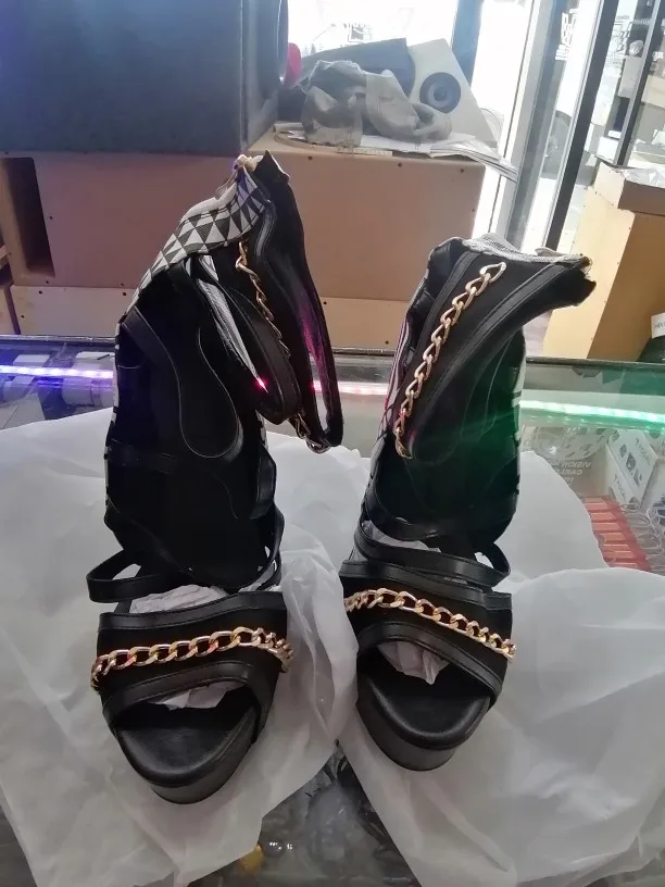 Фирменный дизайн; Большие размеры 47; Пикантные женские туфли-гладиаторы в стиле панк; Летняя женская обувь на высоком каблуке для вечеринок; Женские сандалии на платформе