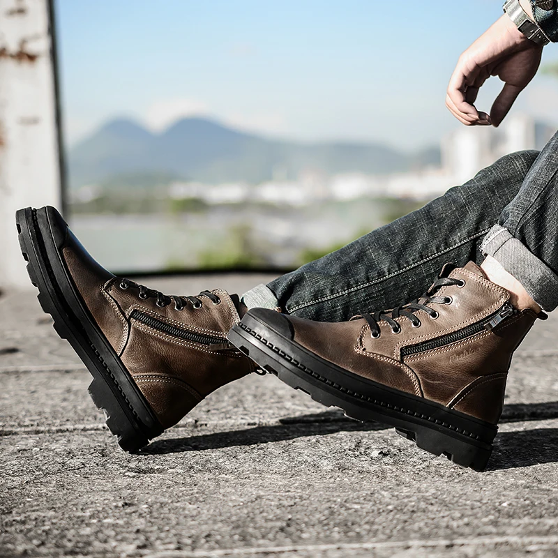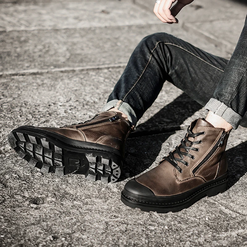 Мужские кожаные ботинки с высоким берцем, повседневная обувь из коровьей кожи на толстой подошве, обувь на плоской подошве, новые кроссовки на массивной подошве, 2019