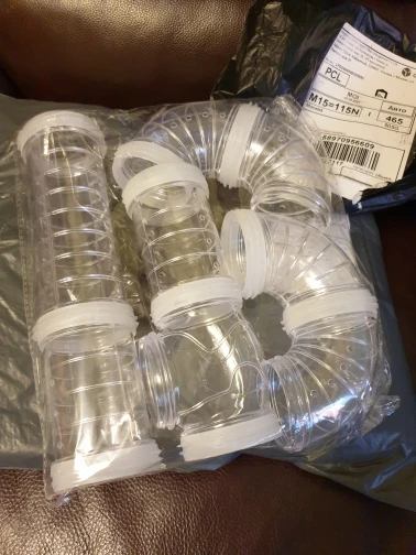 Заказ пришел быстро. Это, пожалуй, единственный плюс. Упаковка состоит только из пакета. Вообще удивлена, что трубы не сломались. Есть царапины. Стыки очень жесткие и диаметр труб не подошел к клетке. Сами трубы нормальные, но в некоторых местах сделаны чересчур большие дырки для дыхания, так что хомяк пытается их грызть. Товаром не довольна. Не берите!