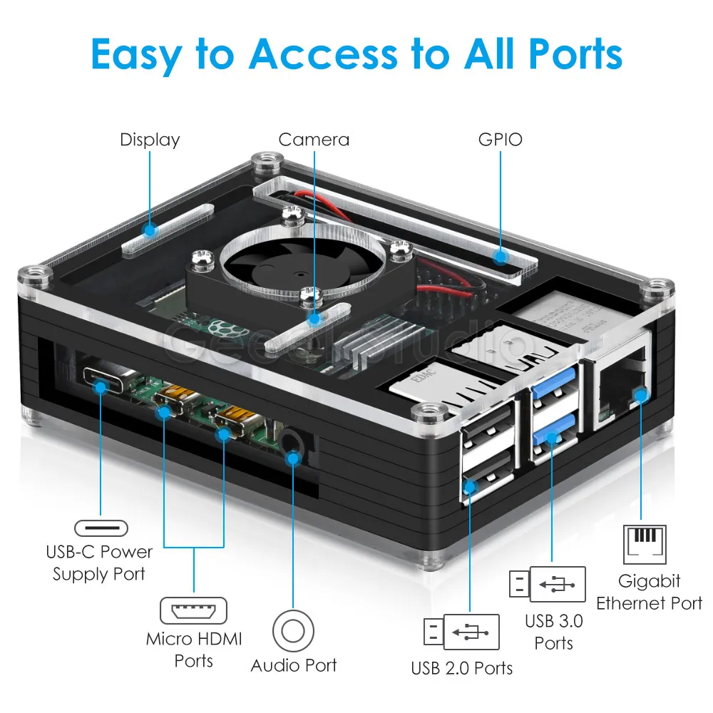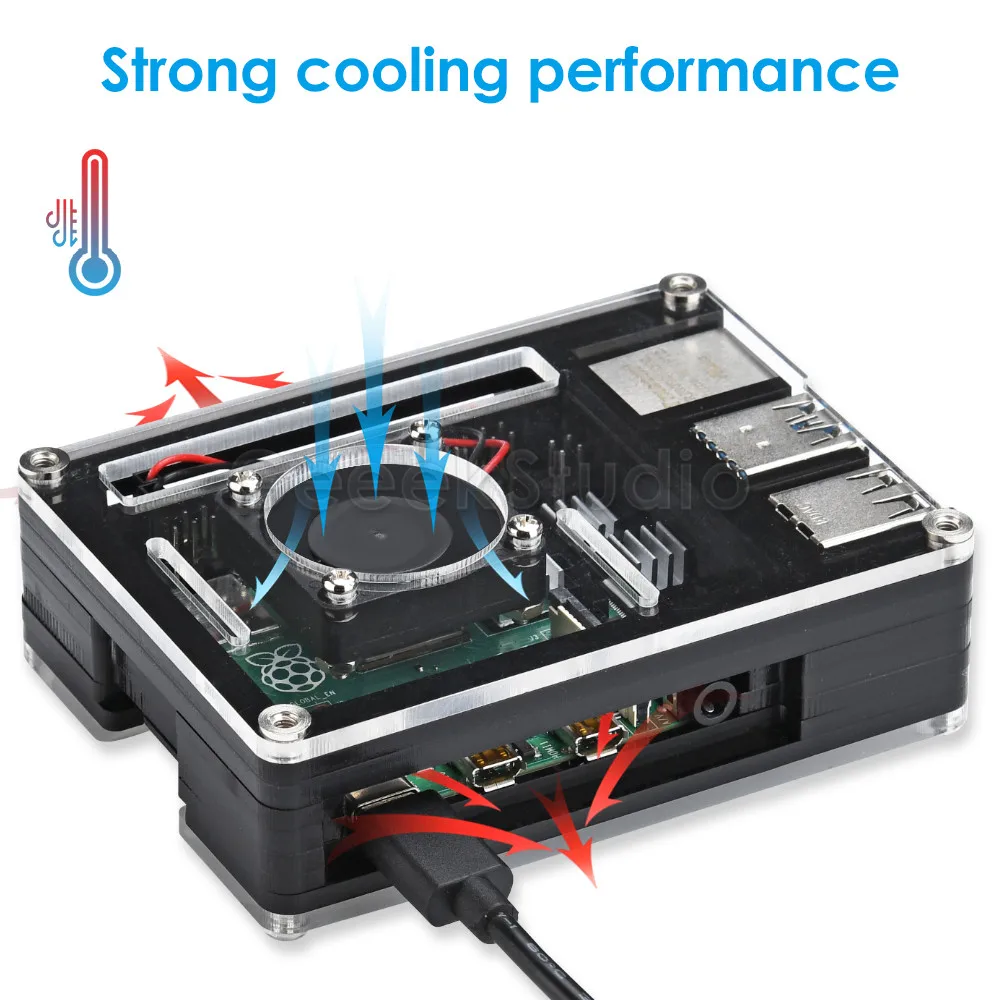Акриловый Пластиковый черный чехол Rasberry Pi 4B с охлаждающим вентилятором для Raspberry Pi 4 Model B (не входит в комплект)