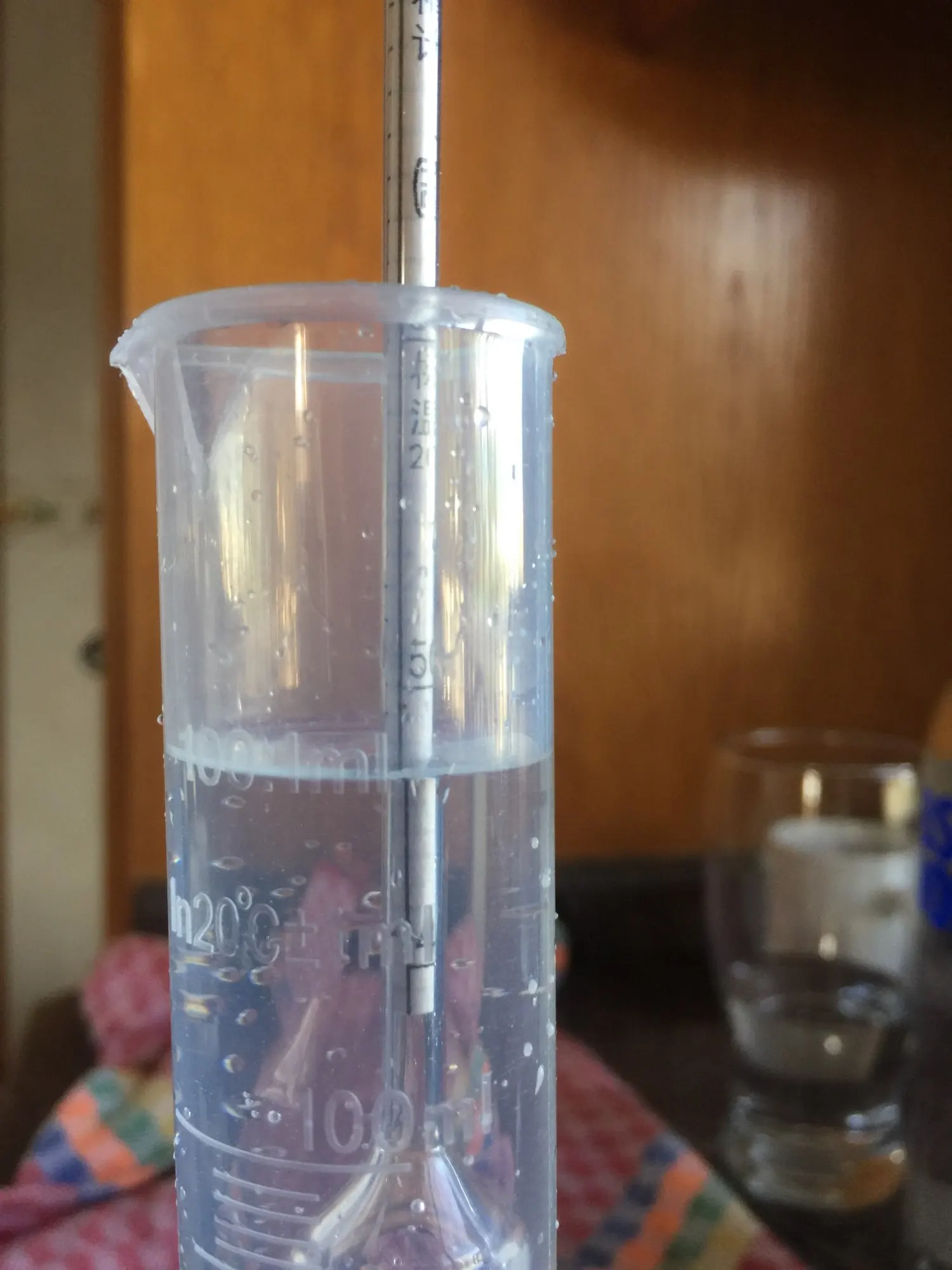 Особенности:Профессиональный и точный набор для измерения алкоголяОчень легко и удобно использовать с термометромПодходит для тестирования спиртовой Ареометр Изготовления Белого спирта и пиваИдеально подходит для домашнего пивоварения, пивных заводов, химических заводов, лабораторий и так далееПосылка включает в себя: коробку для хранения 3 спиртовых метров и 1 термометр и 1 Измерительный флакон (100 мл)Как использовать1, предсказанное количество алкоголя сначала выливается в измерительный цилиндр, не должно быть грязи или мутности спирта.2. Протрите термометр в градуированном цилиндре (температура алкоголя должна быть в пределах0 ~-40 по Цельсию или должен быть нагрев или охлаждение), а затем от 30 до 60 спиртовой протрите проваленный цилиндрКоличество, которое происходит при трех условиях:О: диапазон шкалы уровня индексации, поэтому будьте готовы к градусам.B: уровень жидкости ниже разделительной линейки или скребка спиртового счетчика, затем можно удалить заменитель спиртового счетчика0-30 спецификаций;C: уровень выше, чем разделительная линейка или спиртометр, опускается на дно, затем удаляет спиртометр.3. Чтение, когда уровень жидкости внутри линейки индексации находится в течение 5 минут перед чтением,4. Показывает значение термометра слева направоИсследование, оба значения на кресте, которые хотят измерить фактическую концентрацию алкоголя.Пример: В измерительном цилиндре с концентрацией алкоголя была измерена при 61 градусе, сТермометр измеряет температуру 10 градусов Цельсия алкогольный вид Таблица фактическогоКонцентрации 61,7 градусов.Спецификация:Цвет: белыйТермометр: 0 -50 градусов ЦельсияТри спиртовых гидрометра: 0-100 ГравитацияМатериал: пластик + стеклоПосылка включает в себя:3 спиртовых гидрометра1 x термометр1x100 мл измерительная бутылка