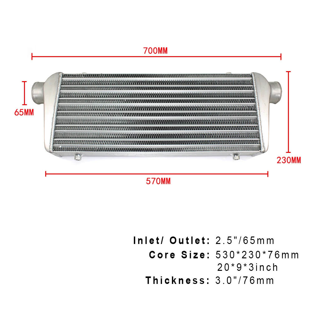 Гоночный автомобильный интеркулер 530*230*76 мм алюминиевый радиатор 20' * 9' * 3' 2,5 дюймов вход 65 мм выход холодного воздуха для турбо радиадора