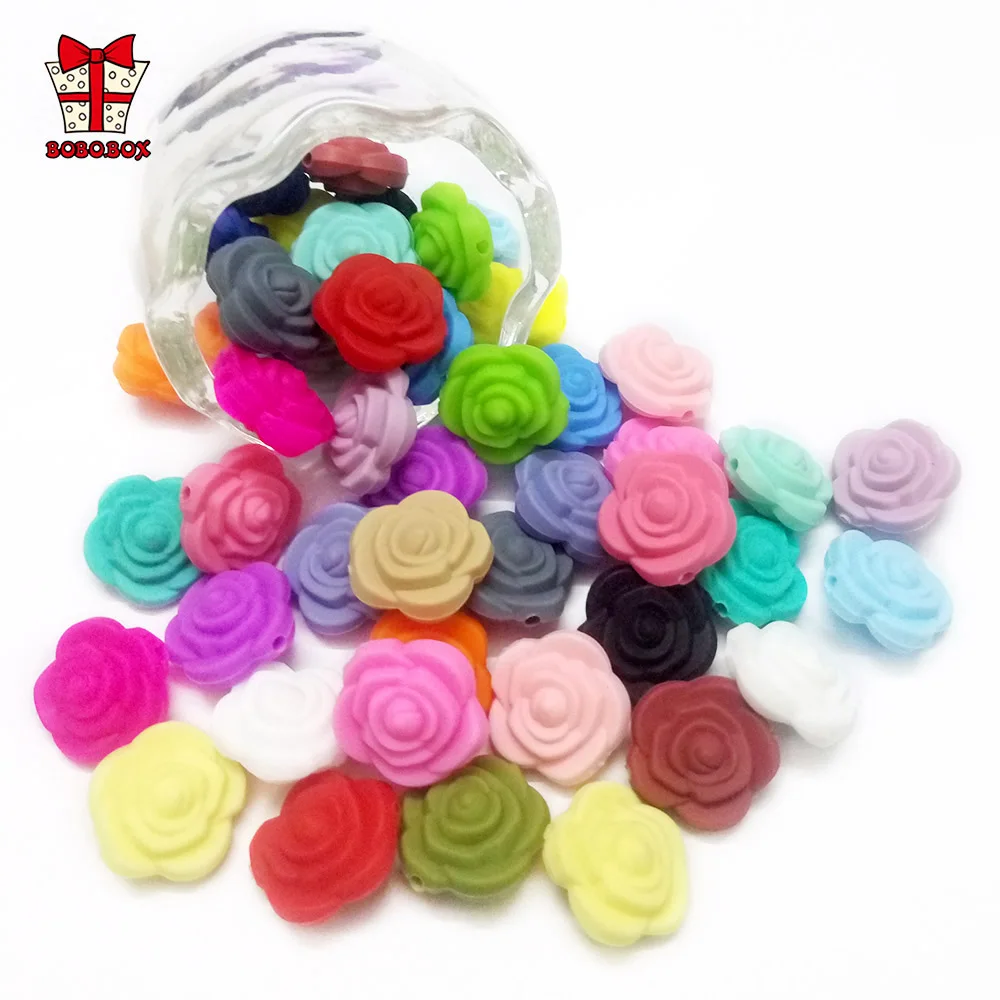 BOBO.BOX 50 шт. силиконовые бусины с розами Двусторонняя Роза 21 мм для ожерелье из жевательной резинки игрушка для прорезывателя силиконовая BPA Free