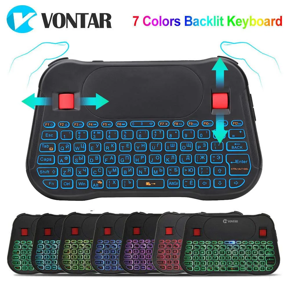 Воздушный Мышь 2,4 ГГц Беспроводной мини клавиатура 7 видов цветов с подсветкой Клавиатура на русском и английском, T18 плюс i8 Сенсорная панель контроллера