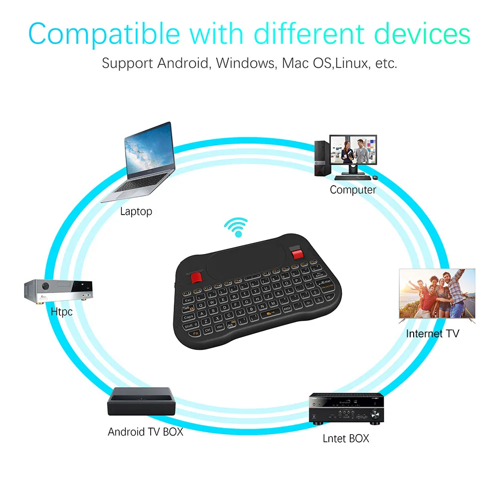 -Беспроводная мини-клавиатура с тачпадом, поддерживающей многофункциональную функцию, левую и правую кнопки мыши, легко печатать и копировать/вставлять, колесо прокрутки будет более удобным для вас, чтобы двигаться, чтобы выбрать то, что вы хотите.