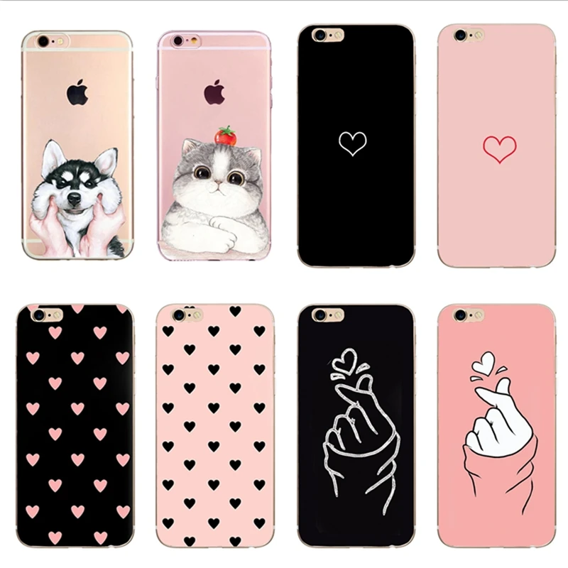 Силиконовый чехол для iphone 8 Plus 6s 6 7 8x10 xs max 5s 5 5se, мягкий чехол с милым сердечком, кошкой и собакой для iphone xr