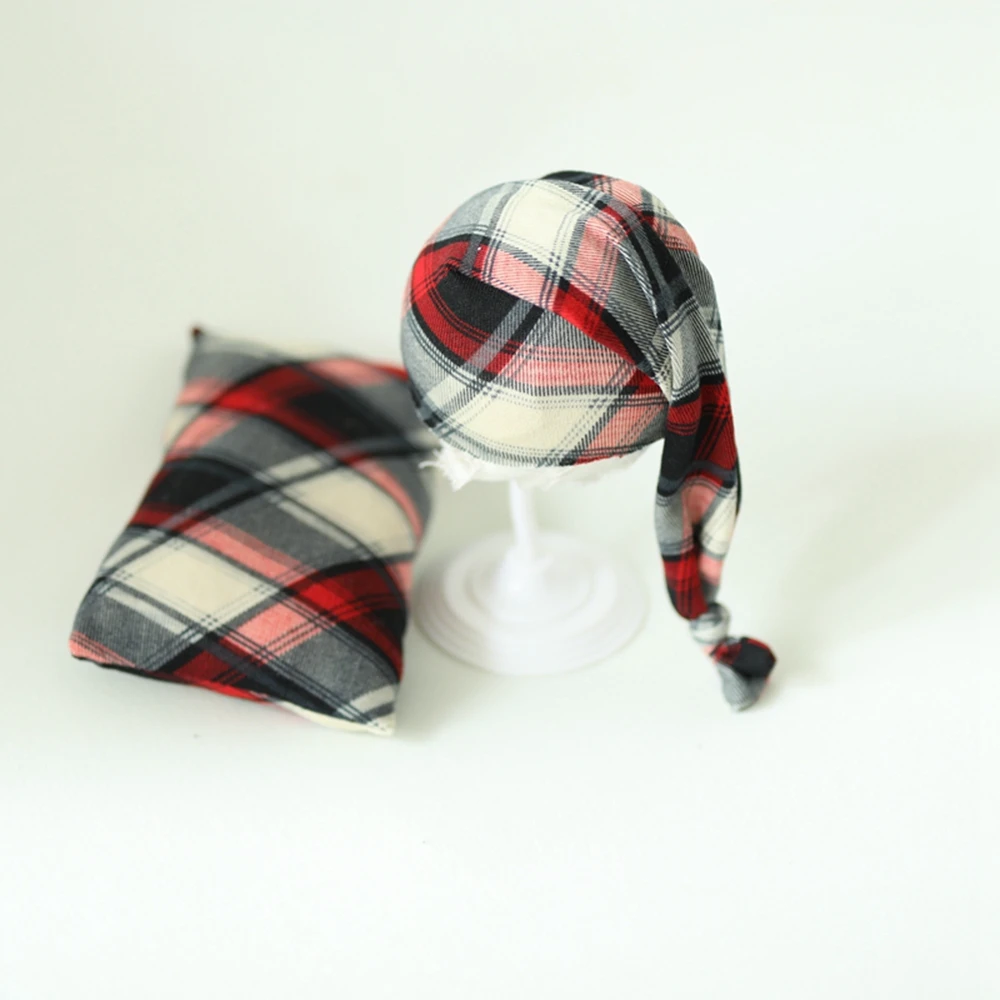 Новинка; Для маленьких девочек и мальчиков реквизит для фотосессии шапочка Кепка в шотландскую клетку и подушки рождественские декоративные аксессуары для фотографирования новорожденных мягкие удобные головные уборы