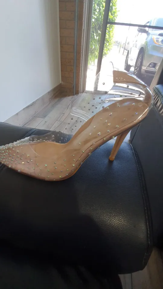 Eilyken модные стразы ПВХ прозрачные туфли-лодочки на высоком каблуке-шпильке с острым носком; Женские вечерние золотистые женские туфли на высоком каблуке для свадьбы, обувь на каблуке