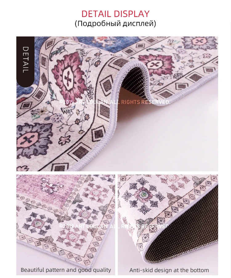 Бархатный ковер с принтом из кристаллов, полиэфирный материал, богатый узорами и красивыми цветами. Не легко выцветаетТолщина около 6-8 мм, мягкая и удобная на ощупь.Выбор цвета похож на ссылку на продукт, и есть много размеров.Вы можете настроить и связаться со службой поддержки клиентов.