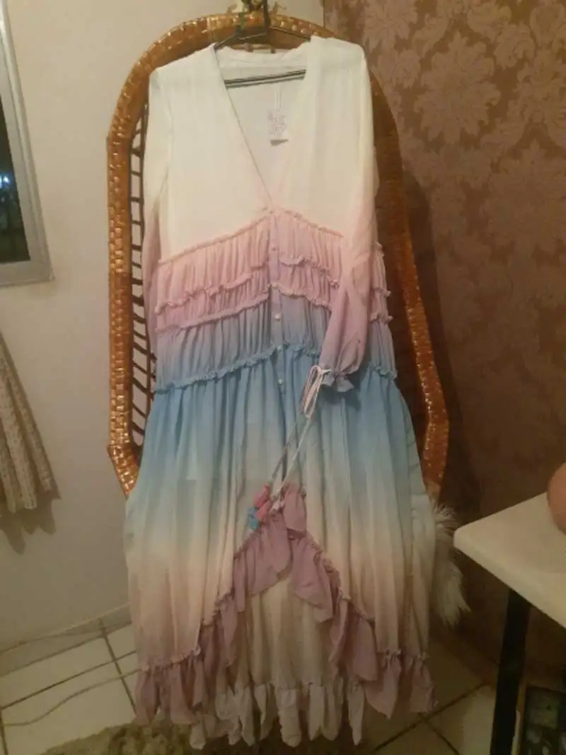 Женское летнее длинное платье с V-образным вырезом и оборками