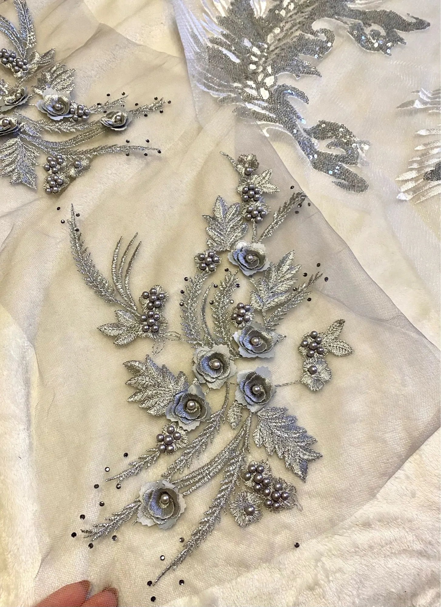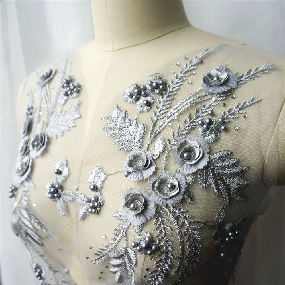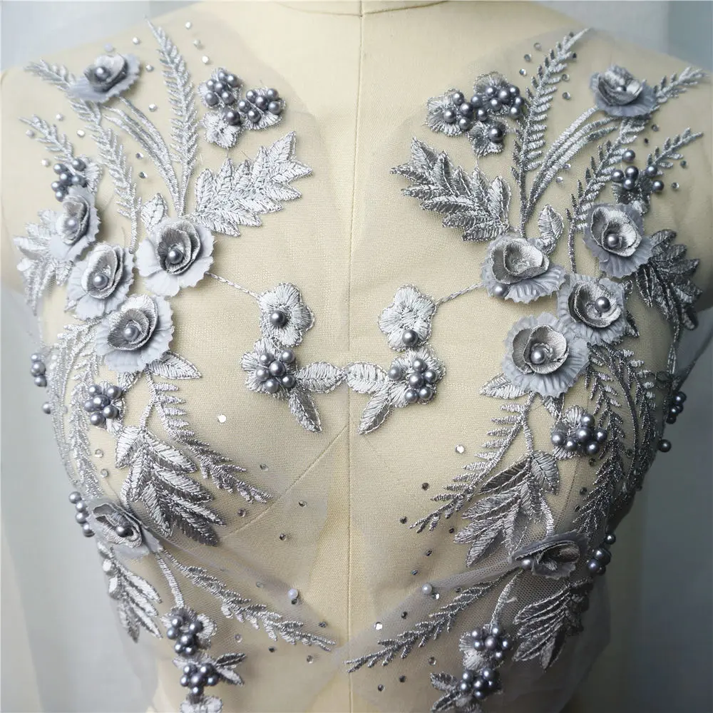 2 шт., серая кружевная ткань, 3D Цветочные бусины с кисточками, вышитые блестящие нашивки для платья, украшение сделай сам