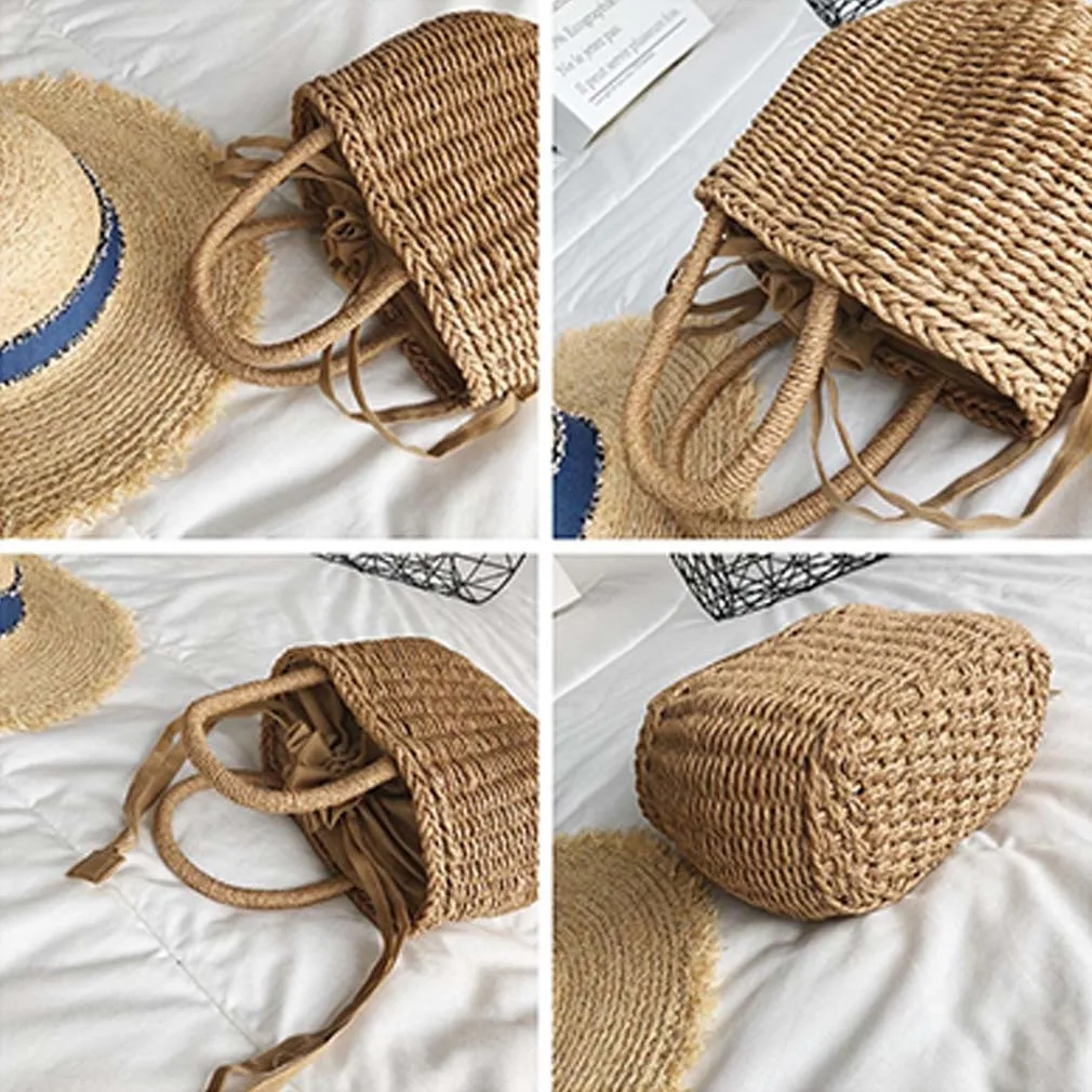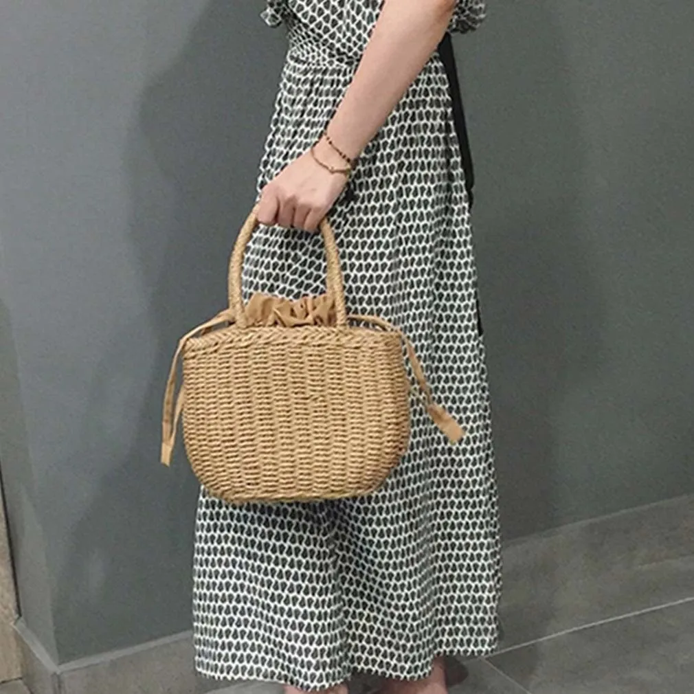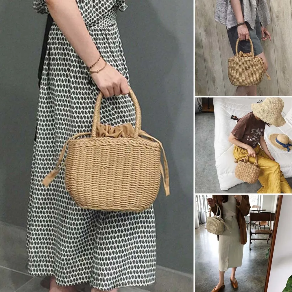 Женская Соломенная плетеная Сумка на шнурке, однотонная Праздничная...