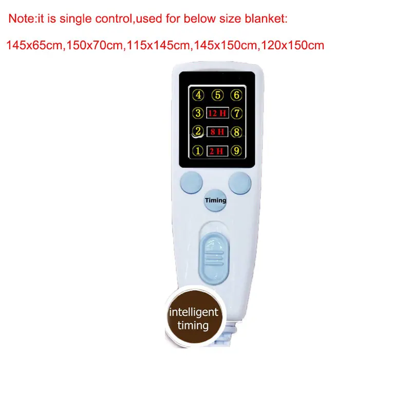 Одиночный пульт дистанционного управления с переключателем времени для 70x150 см, 150x12 0 см одеяло: 9 Контроль температуры шестерни, 2 часа, 8 часов, 12 часов времени,