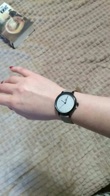 Добротные часы, ремешок из плотного бархатистого материала. Пришли в фирменной коробке. Батарейка была вставлена, имелся стопор. Идут без отставания. На тонком запястье выглядят большими, но все равно красиво смотрятся.