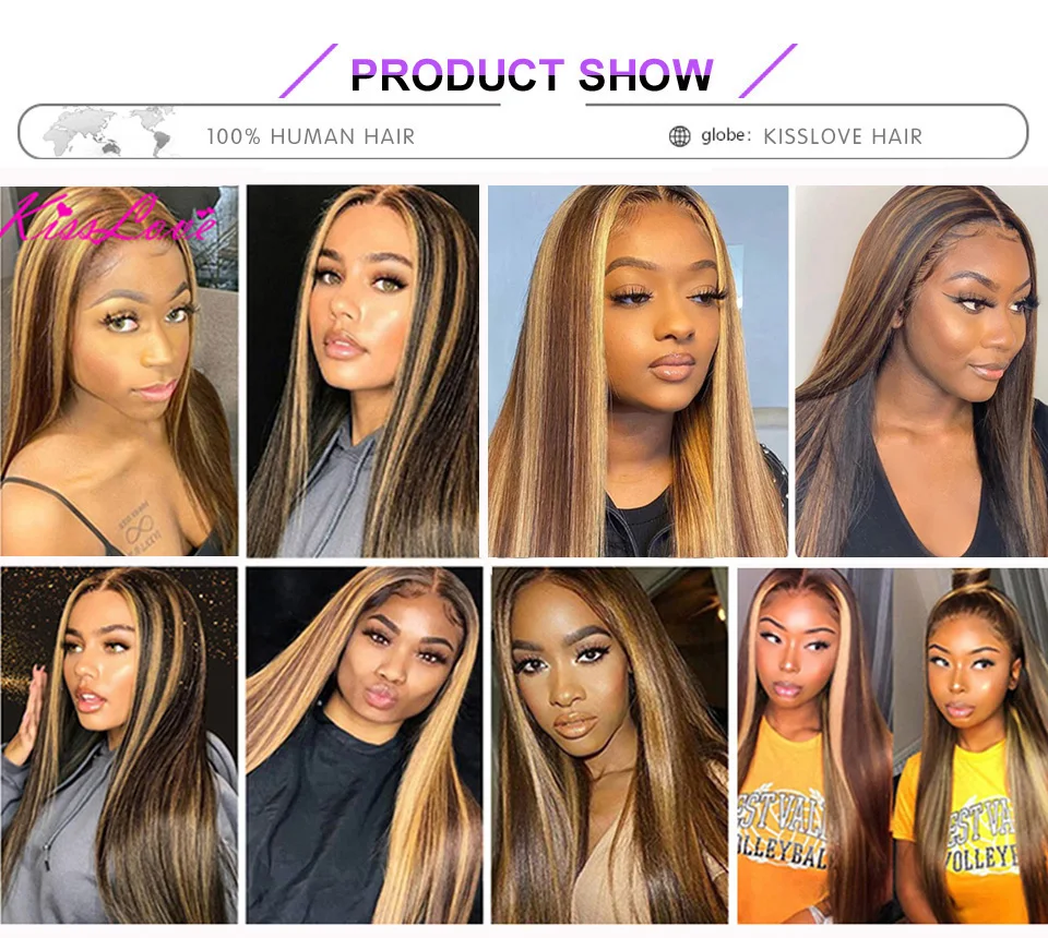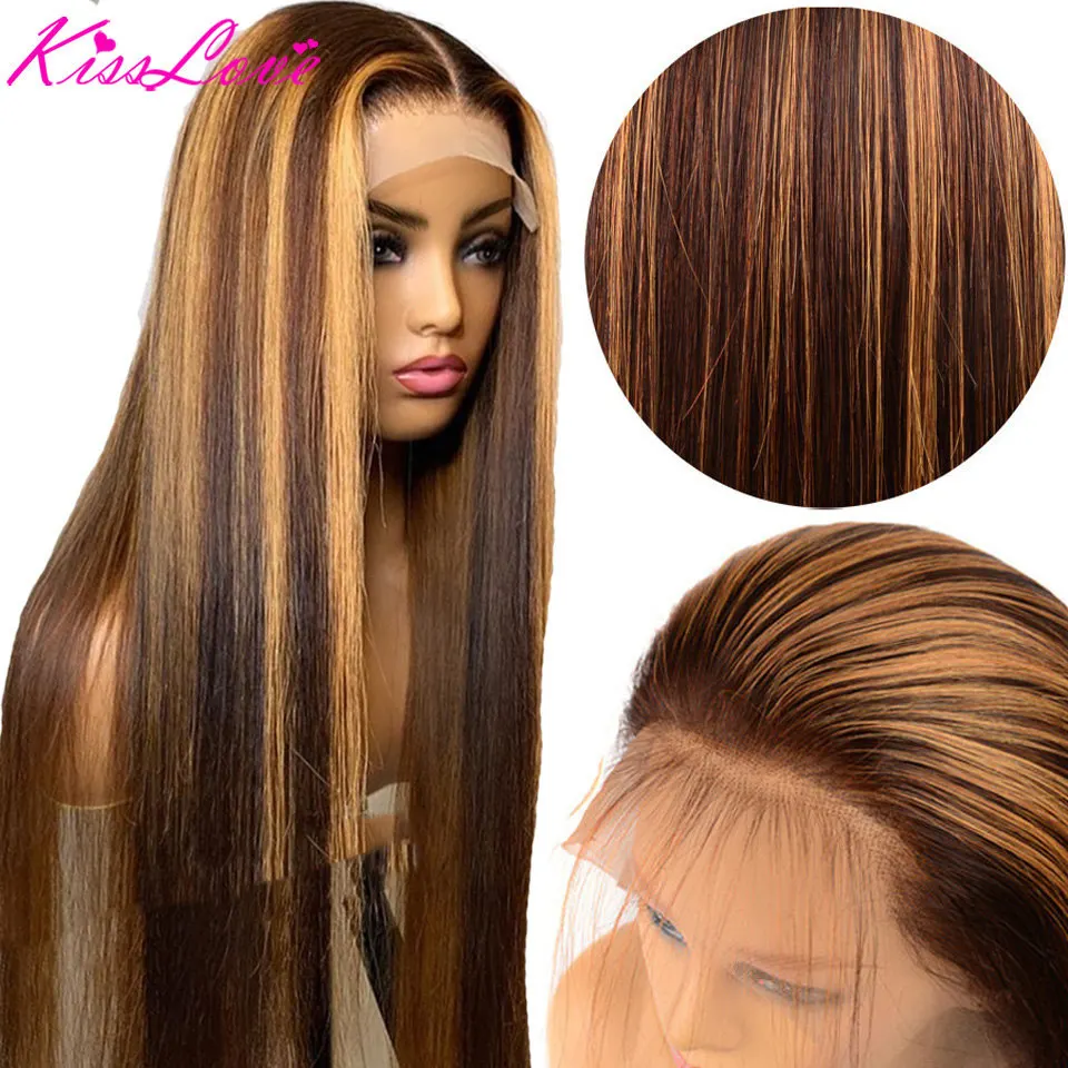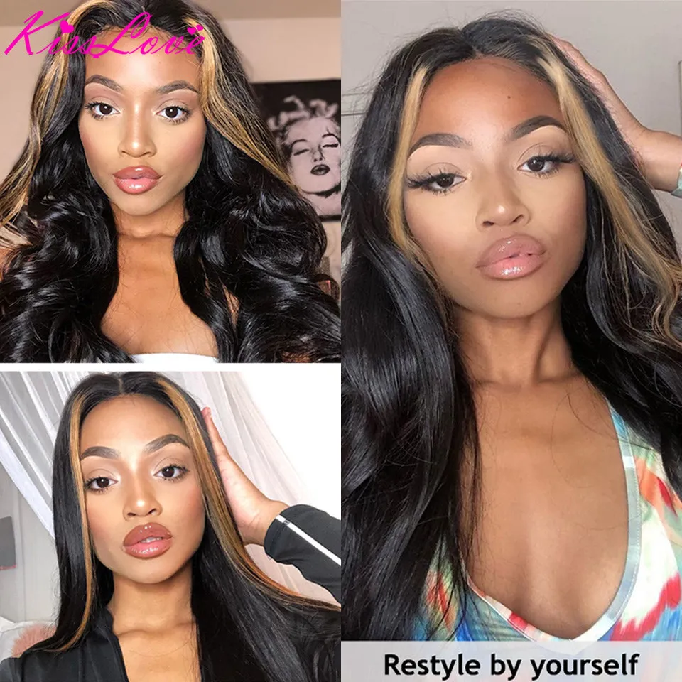 Прямой парик KissLove 427 1B27 из натуральных волос 13X6 13x4, парик из натуральных волос, предварительно выщипанный парик с эффектом омбре, пианино, парик 4x4