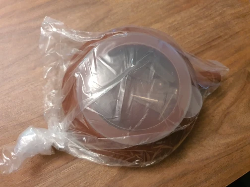 Посылка шла два месяца. Упаковано просто в почтовый пакет. Вещь из резины, проткнуть могли бы легко при перевозке.Брала только емкость. Думала, что будет больше размером. Крышка одевается плотно, но как будет держаться с тестом вопрос. Да и наливать туда тесто надо будет мало. По цене вышло дороже чем сейчас. Не советую.
