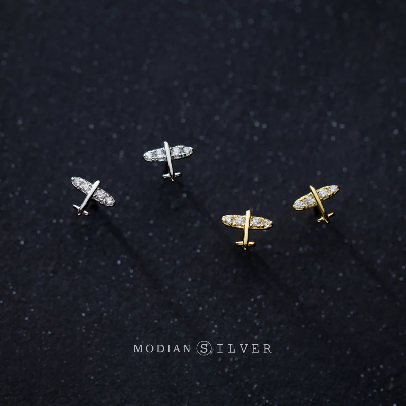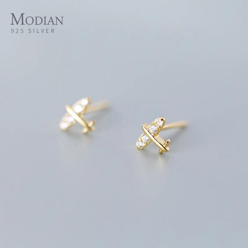Modian простой маленький прозрачный CZ серьги-гвоздики Мода 925 Серебряный Цирконий самолет ювелирные изделия для женщин Шарм ювелирные изделия