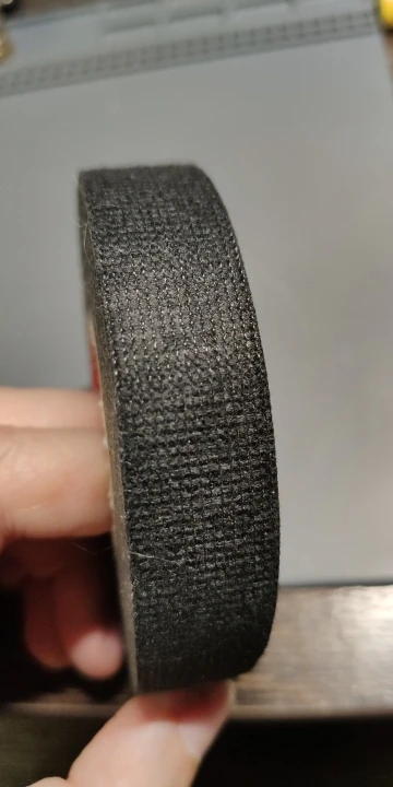 Интересная такая лента. Ткань относительно тонкая и перфорированная, отрывается легко. К рукам не липнет почти, а вот сама на себя липнет, мне кажется это за счёт ворсинок, которые работают как застежка липучка на обуви или одежде. Использую для скручивание пучков проводов в "косу" в авто. Для этой задачи годится. С продавцом не общался.