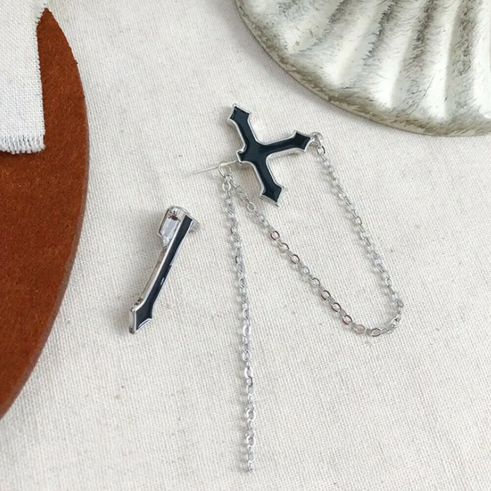 1 шт. готические Винтажные серьги, длинные цепи, крест на молнии, висячие серьги для мужчин и женщин, бижутерия для вечеринки в стиле панк, подарок, украшение для ушей