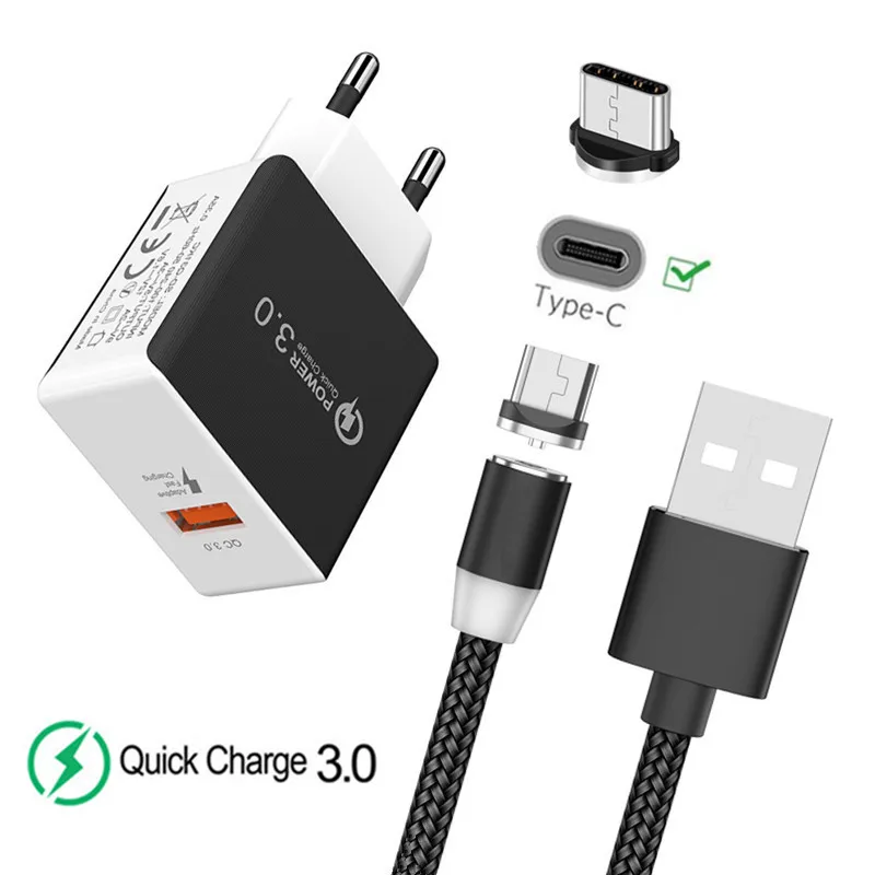 Магнитное зарядное устройство с Micro USB кабелем и QC 3,0 USB быст...
