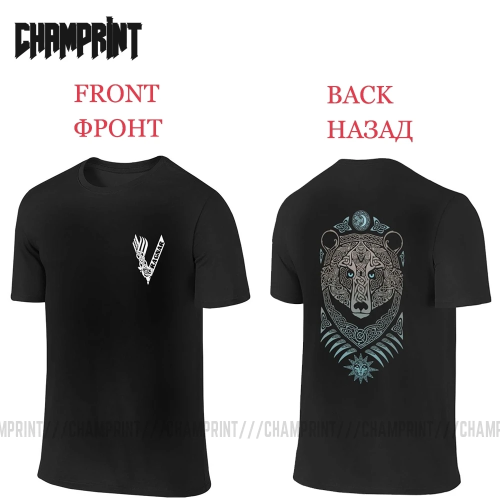Футболка мужская двухсторонняя хлопковая, рубашка с принтом символа викинга Рагнара, топ с коротким рукавом спереди и сзади