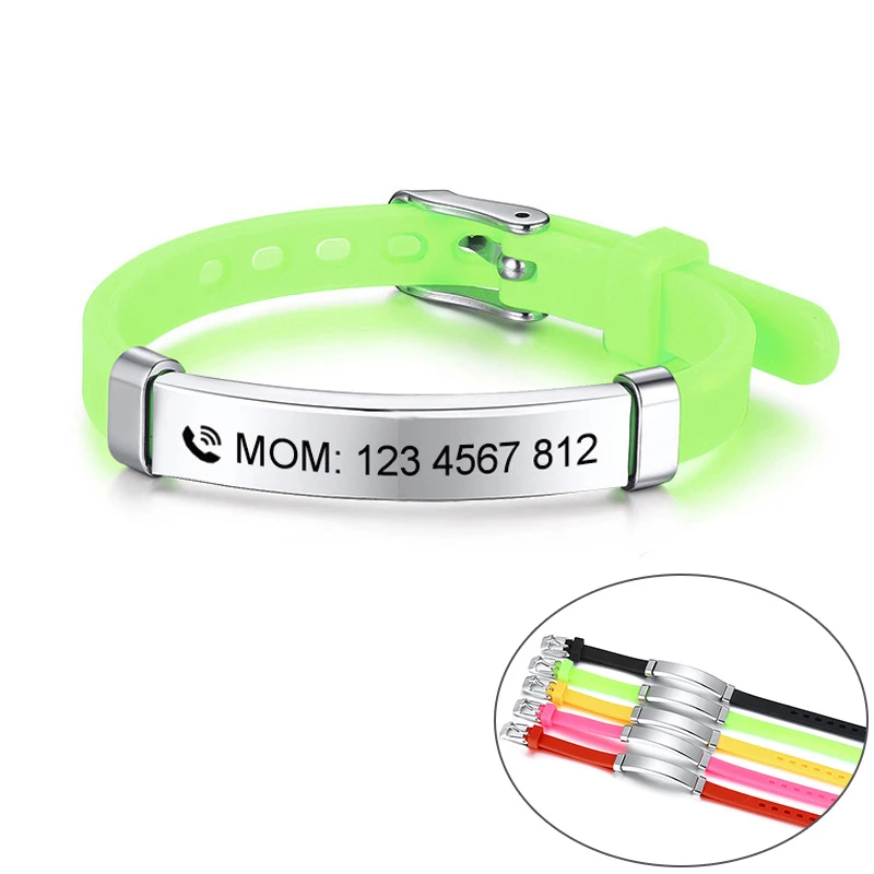 Силиконовые браслеты с гравировкой для мамы, папы, регулируемая длина ID-номера телефона, напоминание об экстренных ситуациях на заказ, ювелирные изделия
