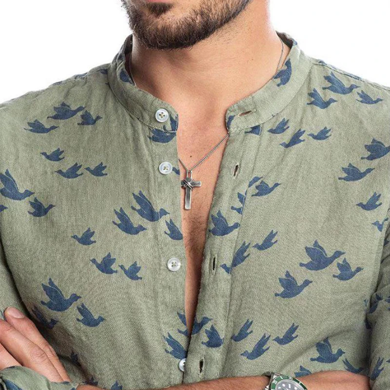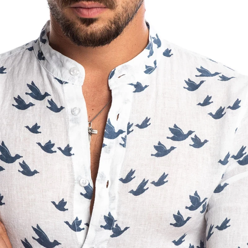 Рубашка мужская с принтом, модная повседневная Гавайская блуза Slim Fit, на пуговицах, с воротником и длинным рукавом, в Корейском стиле, для делового образа, пляжа, лето