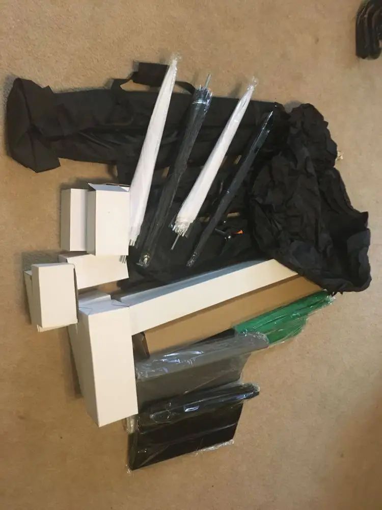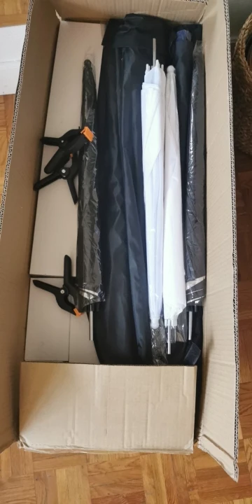 Отличная сделка! Качество было намного лучше, чем я ожидала-металлические столбы, не дешевый пластик. Зонты и световые коробки очень легко установить и снять. Качество света от ламп очень красиво смотрится.