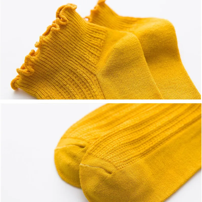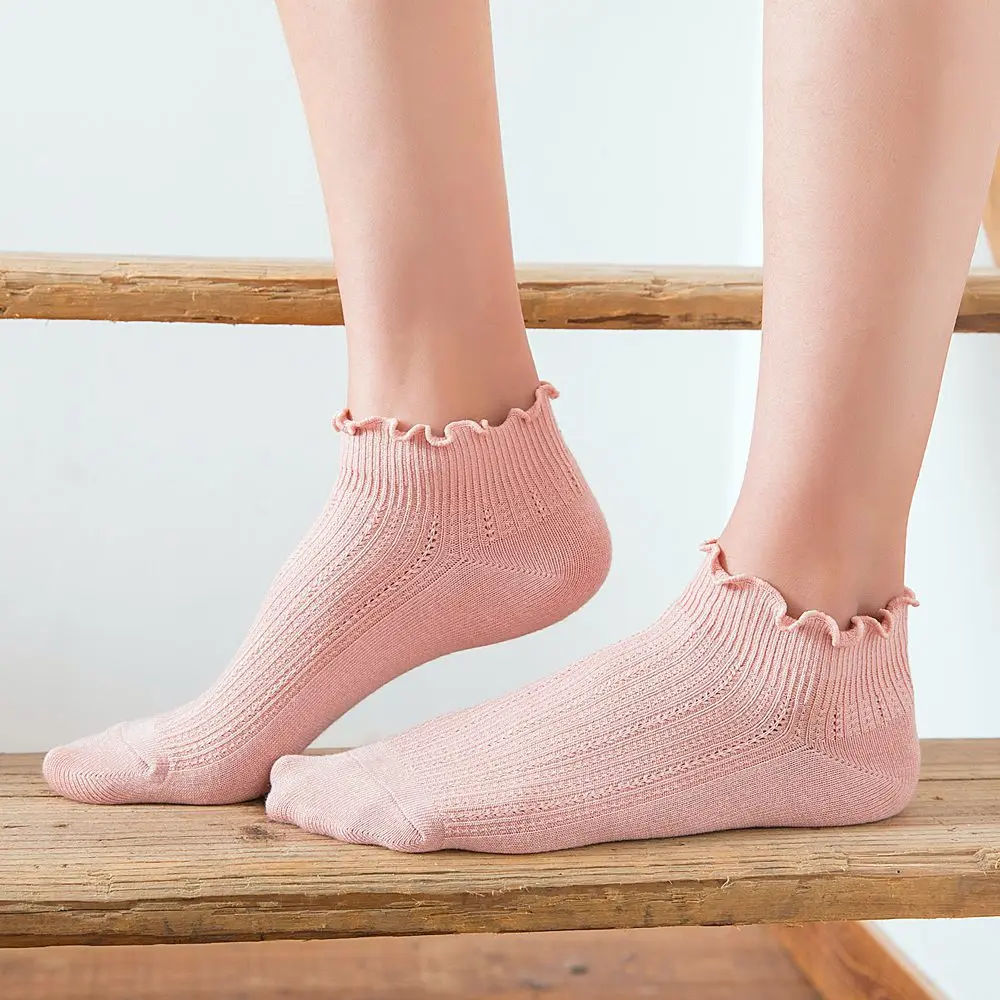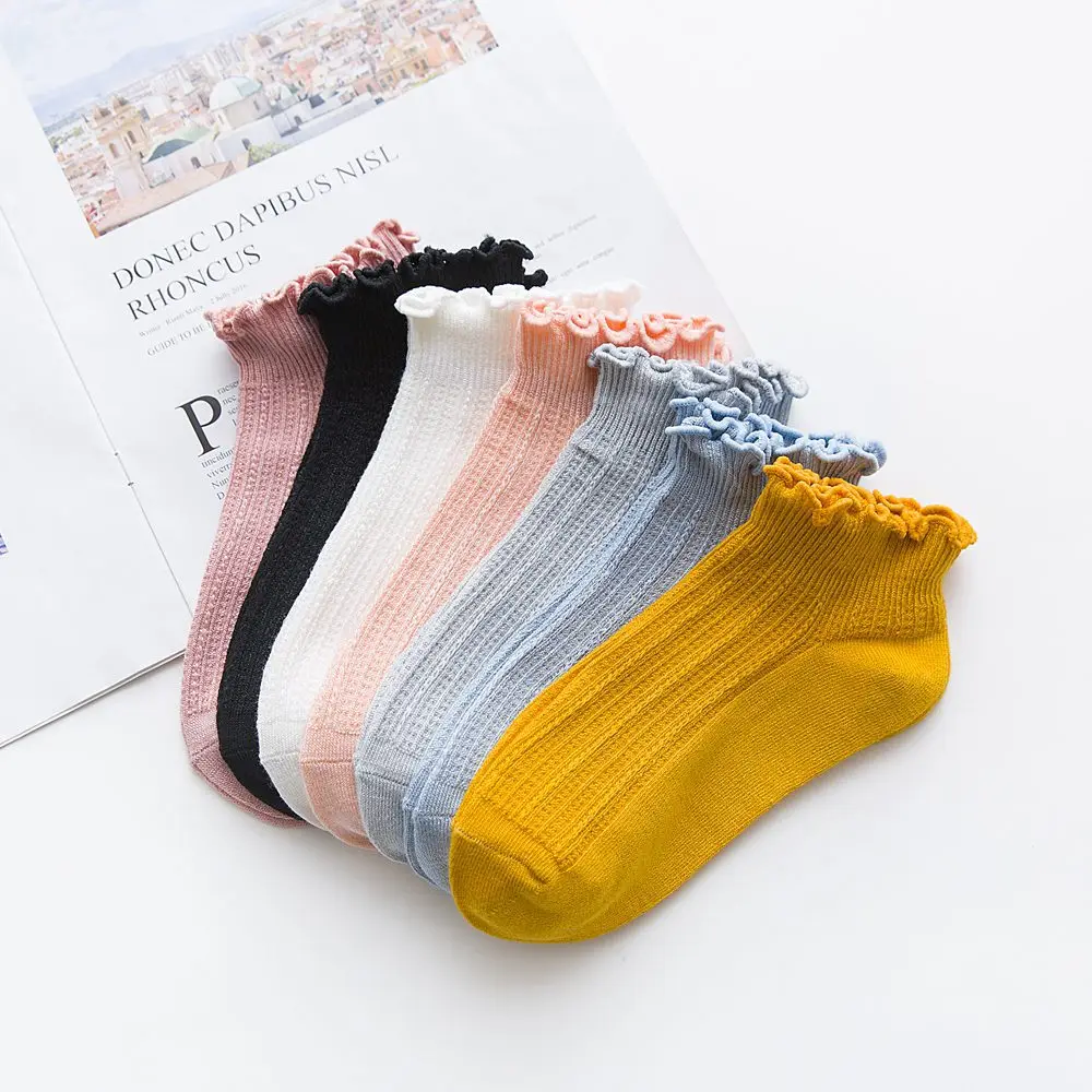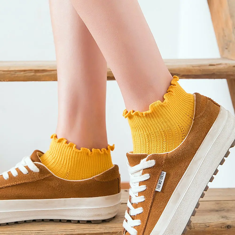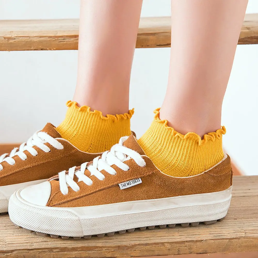Бамбуковые носки с оборками 1 пара, хлопковые женские носки с милыми оборками по щиколотку для девочек, милые повседневные короткие женские винтажные носки-лодочки