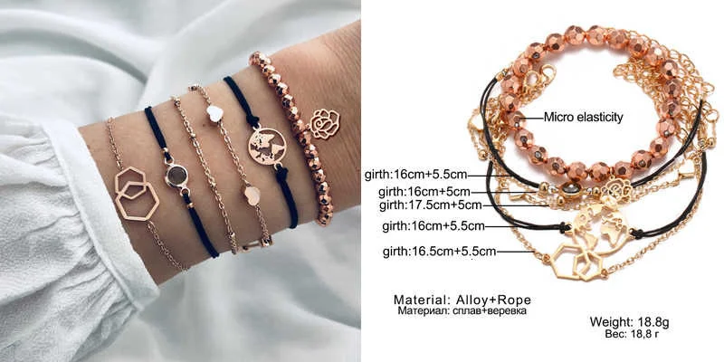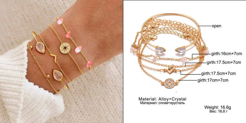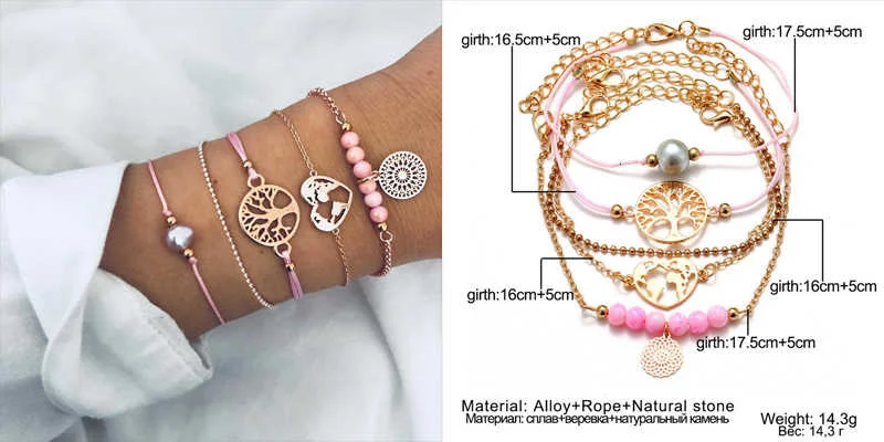 Комплект женских браслетов и браслетов в стиле бохо, в богемном стиле, многослойные аксессуары, винтажная бусина