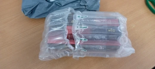 Посылку доставил курьер, почему-то распечатанную. Но все было на месте. Коробочки слегка помяты.