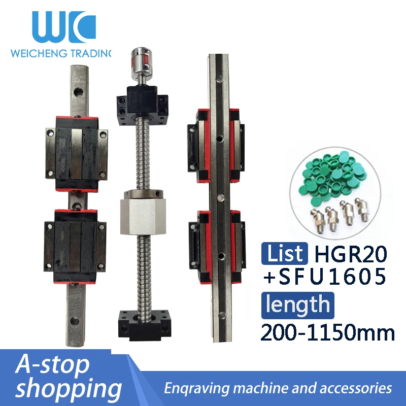 Квадратные линейные направляющие HGR20, 2 комплекта, HGR20 + Направляющий Блок HGH20CA + SFU1605, шариковый винт 5 мм + линейный привод BK12BF12cnc