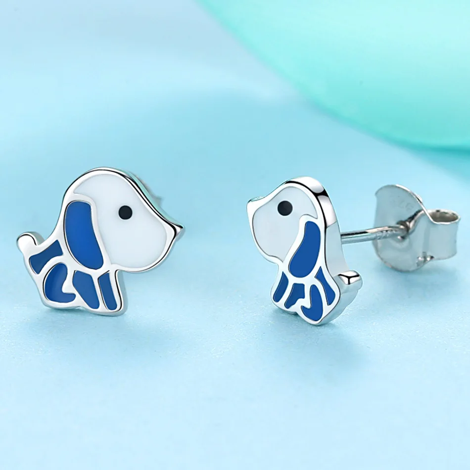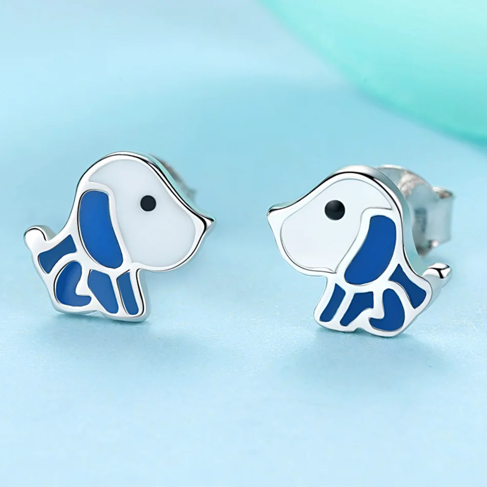 925 серьги из стерлингового серебра с милой собачкой серьги мелких животных Эмаль серьги со шпилькой, для женщин, для девочек детская одежда для малышей и детей постарше ювелирные изделия