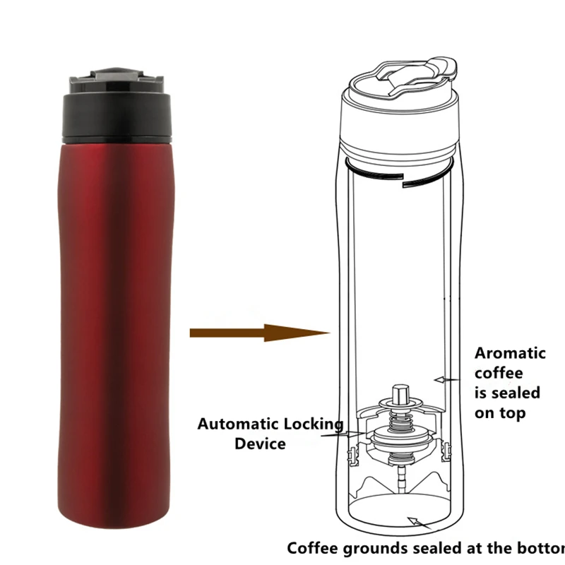 Портативная чашка с фильтром Френч-пресс для приготовления кофе, вакуумный поршень для кофе, чашка для сохранения теплахолода, дорожная кофейная кружка